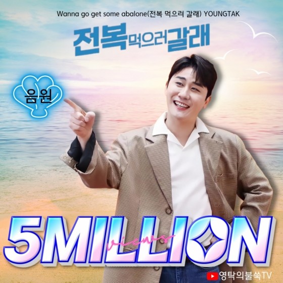 가수 영탁의 공식 유튜브 채널 '영탁의 불쑥TV'에 업로드 된 '전복 먹으러 갈래' 음원 영상이 19일 현재 500만 뷰를 넘어 선 것.